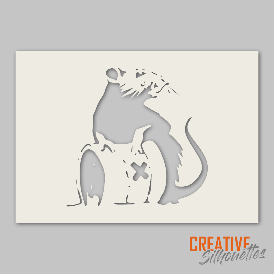 Banksy Toxic Rat StencilOverall design sizes are: A5: 125 x 120mm |