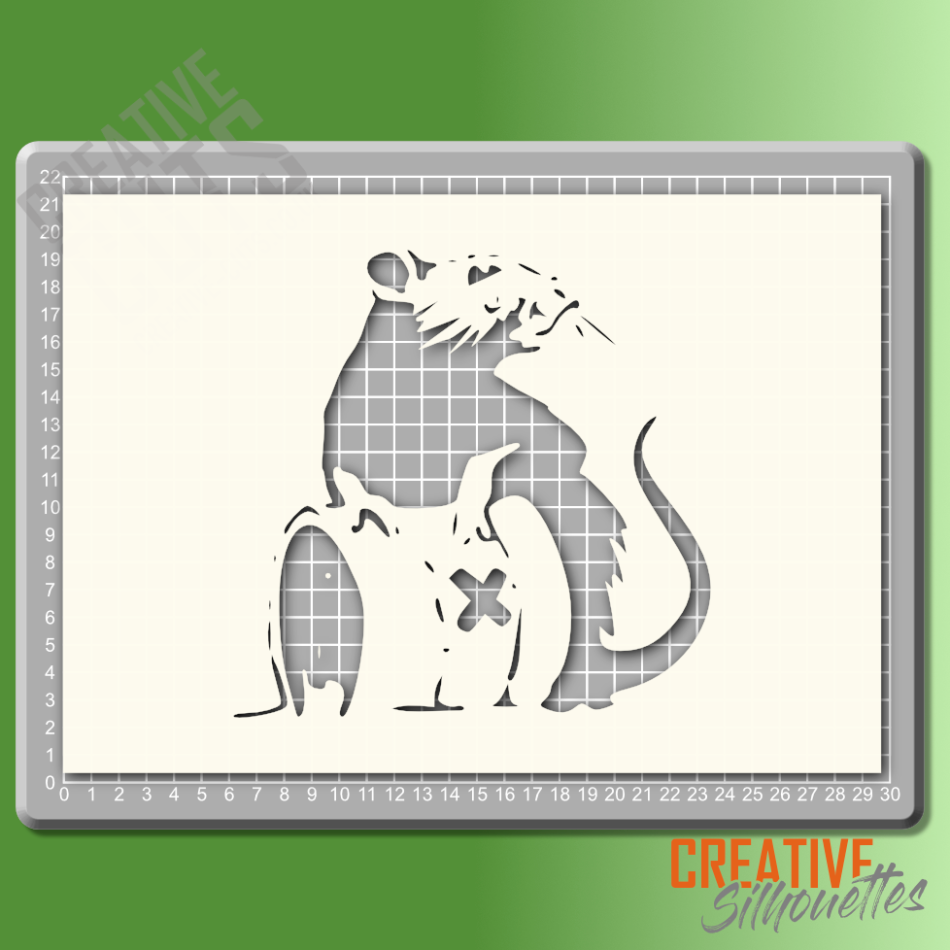 Banksy Toxic Rat StencilOverall design sizes are: A5: 125 x 120mm |